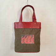 Premium Collection | Khaki Nylon x Brick Leather Print on Leather Applique