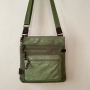 Premium Collection | Proto-KIKI Small Leather & Nylon Mix Cross-Body Shoulder Bag | Green x Brown