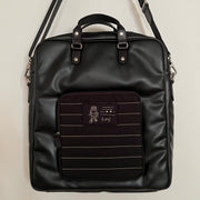 Premium Collection | Tall Vegan Leather x Nylon x Leather Handles Briefcase with Stripe Stitch Accents | Black x White