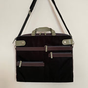 Premium Collection | Nylon x Leather Briefcase with Stripe Stitch Accents | Black x Sage