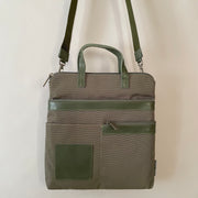 Premium Collection | Small Nylon x Leather Mix Cross-Body Shoulder Bag with Metal Zipper Pulls and Rose Embroidery | Sage